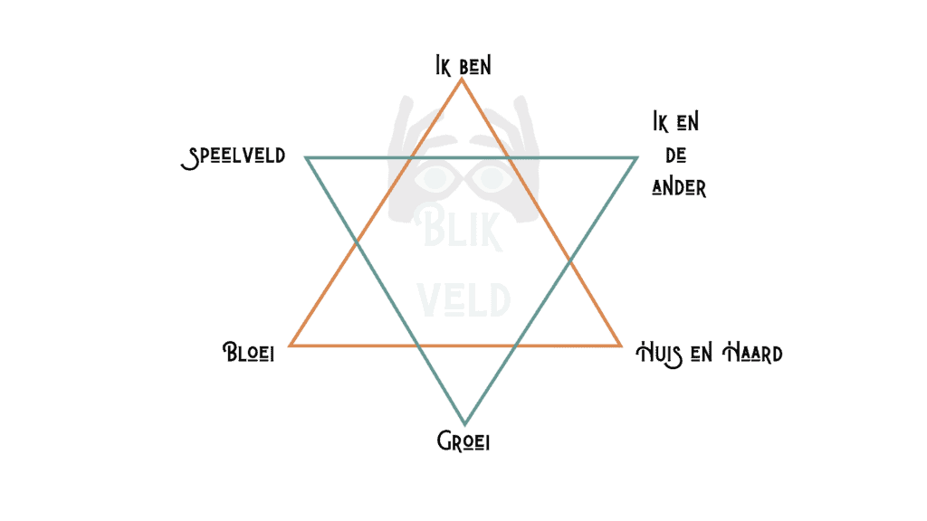 - We delen ervaringen en inzichten op basis van de zes blikvelden: Ik ben, Ik en de ander, Huis en Haard, Groei, Bloei en Speelveld.